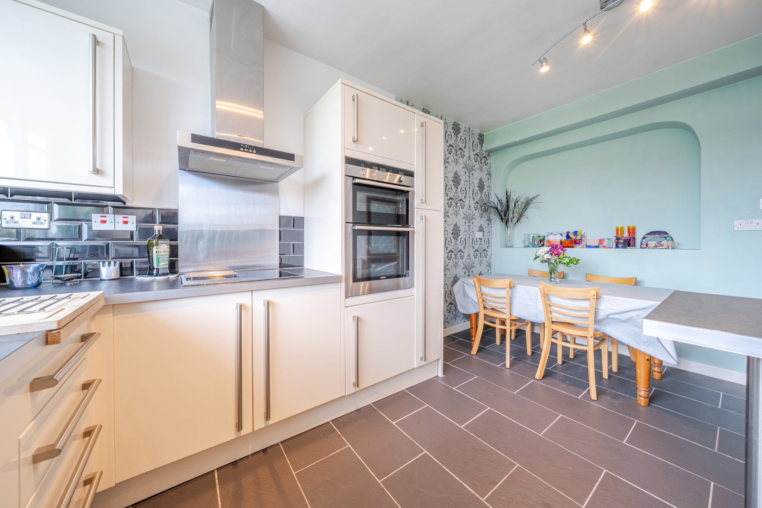 Inside, most ceilings have been re-plastered and finished, complemented by two professionally fitted bathrooms with quality fixtures. Further improvements include a new upstairs shower, updated water systems, loft insulation and existing cavity wall insulation, enhancing efficiency.