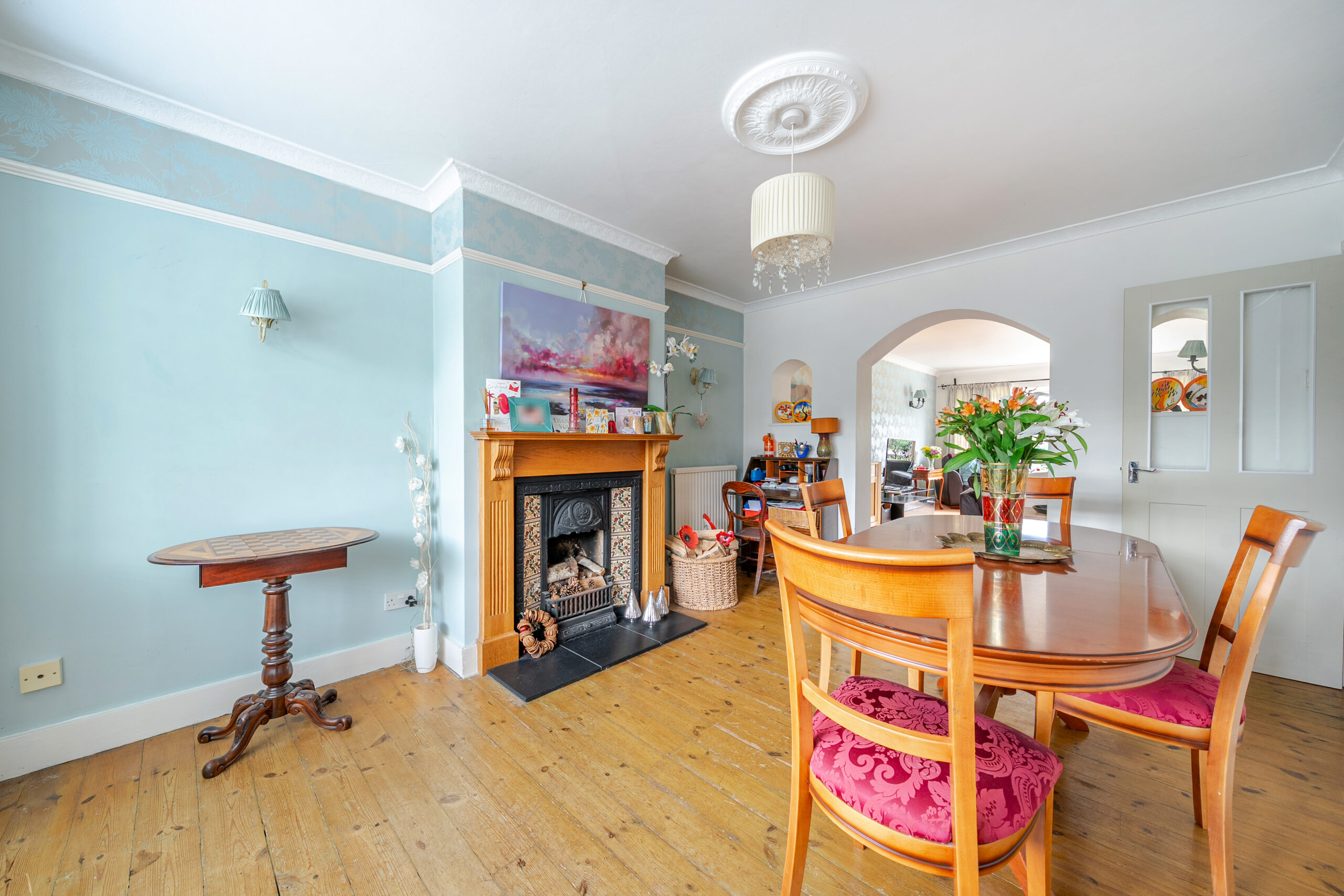 Step inside and the home’s heritage is evident. Original floorboards to the front rooms and two chimneys reflect its period origins, with scope to create up to four fireplaces, one already in working order, bringing warmth and character to multiple living areas. The layout is both comfortable and adaptable, with a practical downstairs shower room adding everyday convenience.