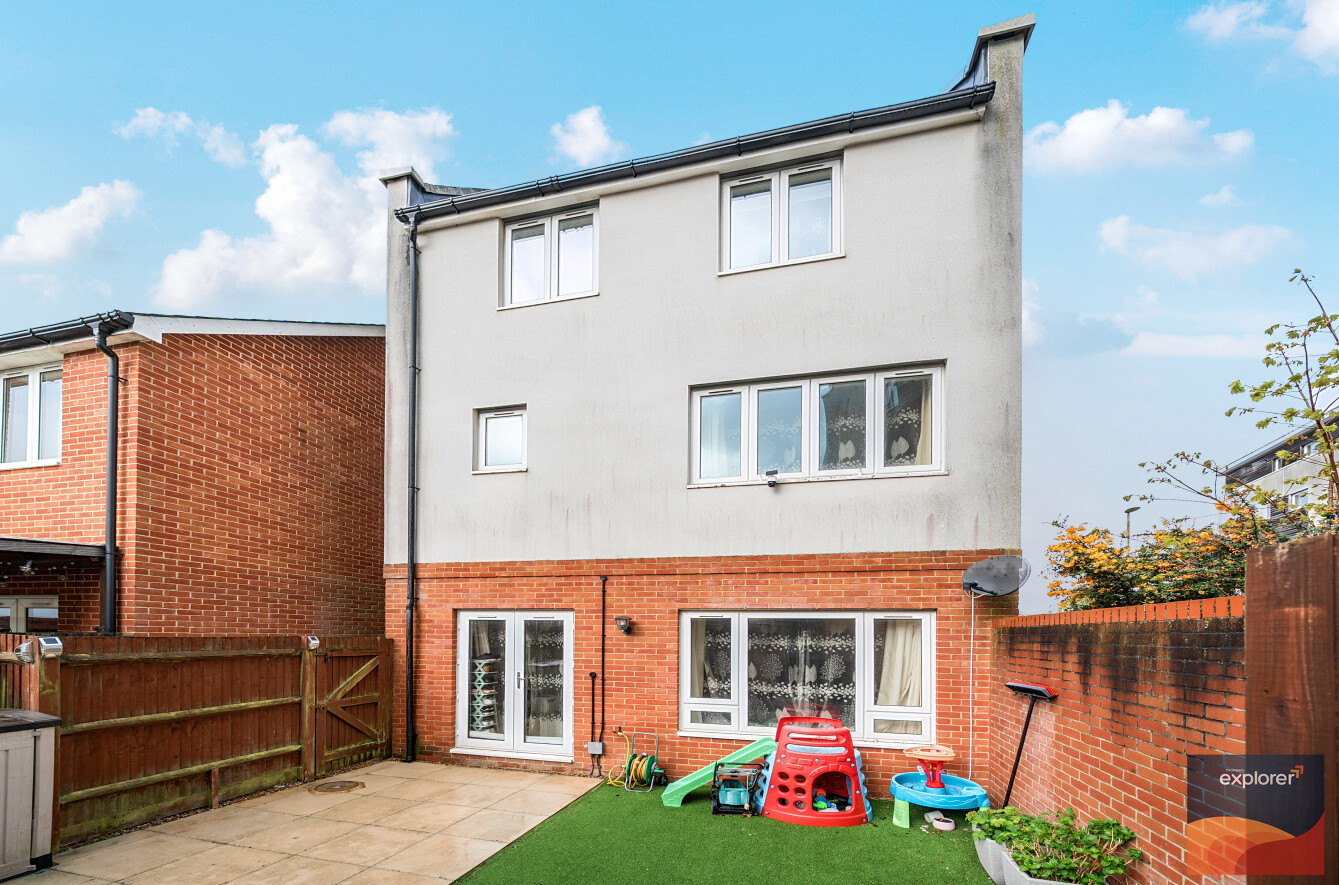 Rarely available four bedroom detached townhouse, generously proportioned and thoughtfully arranged across three floors, offering a highly versatile and well appointed living space. This contemporary modern home is ideally positioned close to local amenities and highly regarded schools, making it perfectly suited for families and professionals alike. The property benefits from a separate outbuilding currently used as a study, providing an excellent work from home solution. Inside, the accommodation is bright and welcoming throughout, with large windows allowing an abundance of natural light to enhance the overall first impression. The layout offers flexibility for modern living, complemented by a spacious principal bedroom with ensuite, a convenient downstairs WC, and well balanced rooms across all levels. Externally, the home includes allocated parking and the added advantage of the detached setting, creating a sense of privacy and space rarely found in similar properties.